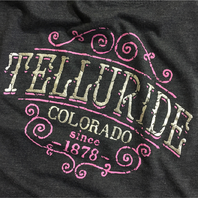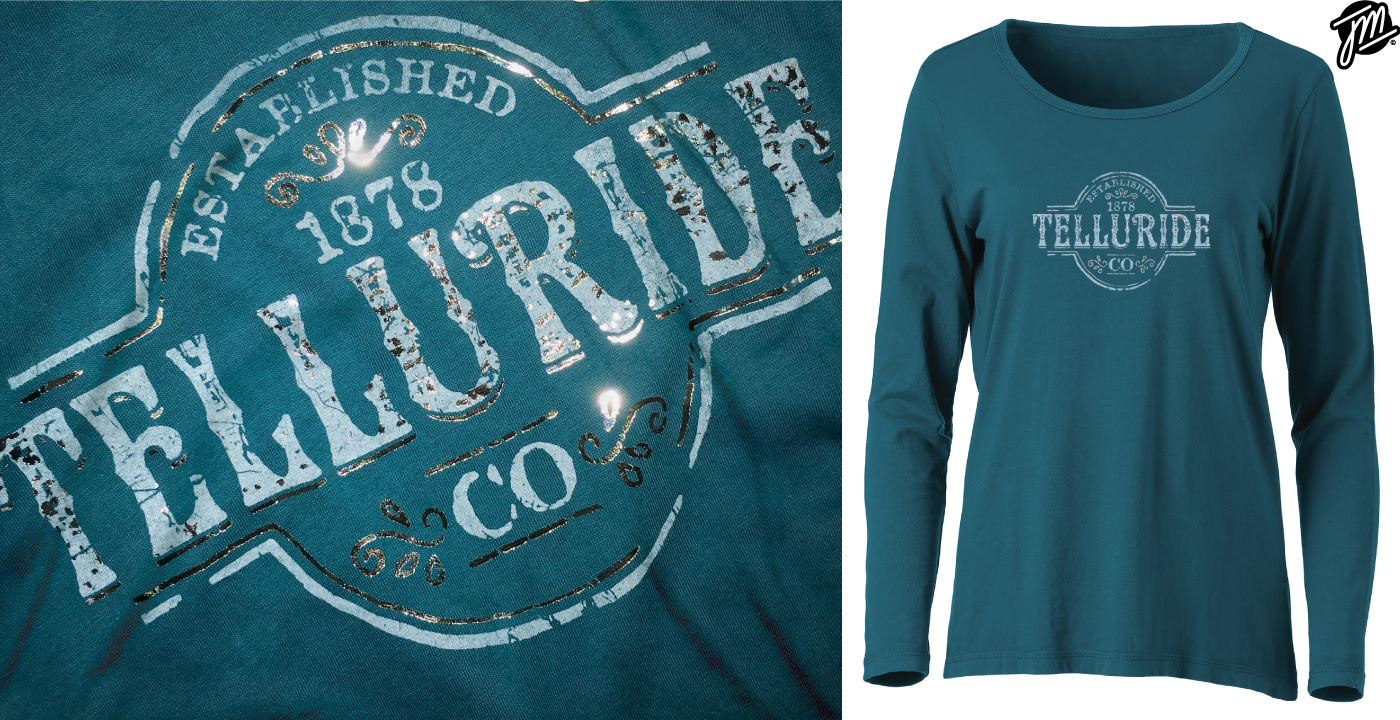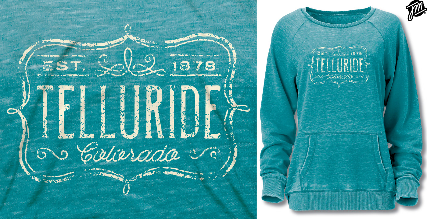 This vintage collection was created for Ouray Sportswear. The graphics were inspired by vintage perfume labels. Most designs include flourish elements, textures and specialty inks, such as: foil and shimmer.